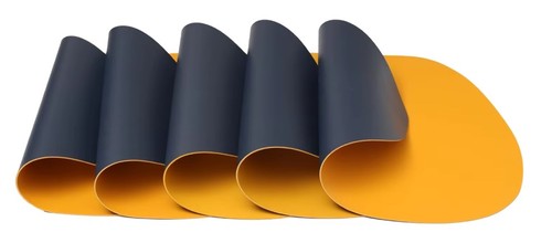 Комплект от 4 броя двуцветни кожени подложки за хранене - тъмно синьо/жълто