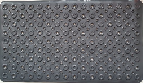 Подложка за баня против хлъзгане. Изработена от PVC, с вендузи за и дренажни отвори за оттичане на водата. Вендузите посволяват лесно и стабилно позициониране.